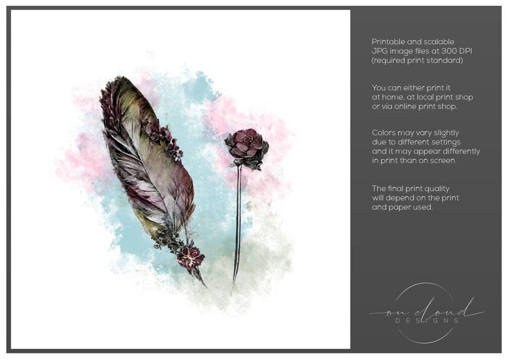 - Colors may vary slightly due to different monitor settings and they may appear differently in print than on screen. The final print quality will depend on the printer and paper used.